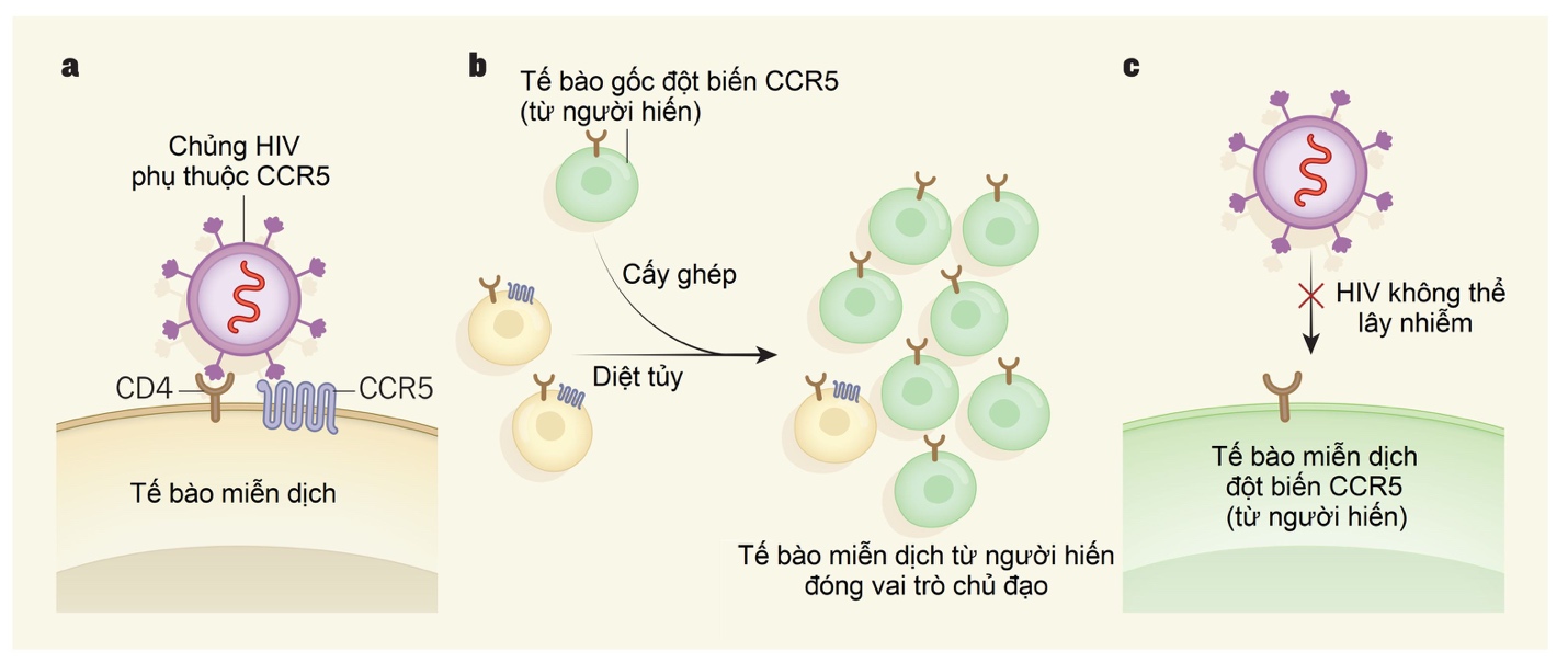 Nguồn: Henrich, T. J. (2019). Second example reported of a stem-cell transplant in the clinic leading to HIV remission. DOI: 10.1038/d41586-019-00989-y.