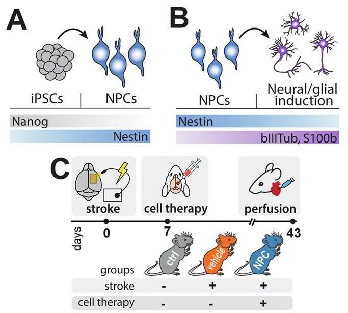 Các nhà khoa học tại Đại học Zurich (Thụy Sỹ) đã công bố kết quả nghiên cứu cho thấy cấy tế bào gốc có thể khắc phục những tổn thương do đột quỵ, đánh dấu một cột mốc quan trọng trong điều trị các rối loạn não. Họ đã sử dụng tế bào gốc thần kinh (neural stem/progenitor cells – NSC/NPC) ở người, là loại tế bào có thể hình thành các loại tế bào khác nhau của hệ thần kinh. Những tế bào này được thu nhận từ quá trình biệt hóa của tế bào gốc đa tiềm năng cảm ứng (induced pluripotent stem cell – iPSC), được tạo ra từ quá trình tái lập trình từ tế bào đã biệt hóa.