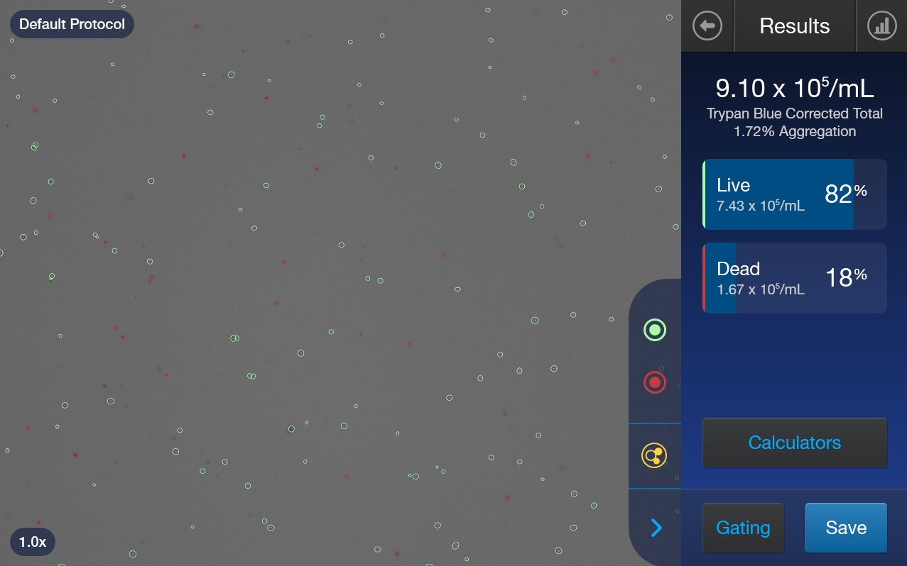 Ví dụ: Kết quả đếm tế bào trên máy Countess 3 Automated Cell Counter (ThermoFisher Scientific) (Hình 2)