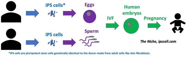 Trong thực tế, việc tạo ra trứng và tinh trùng từ tế bào gốc ở người chưa được thực hiện, tuy nhiên người ta đã làm được trên chuột, sau đó cho trứng và tinh trùng đó thụ tinh và tạo ra được chuột con. Nhóm chuyên gia dự đoán rằng những tiến bộ tương tự sẽ sớm trở nên "khả thi về mặt công nghệ" ở người. Điều đó thúc đẩy tiềm năng nghiên cứu phôi người ở giai đoạn sớm, nhưng cũng đặt ra những thách thức trong việc quản lý vấn đề nhân bản, hay việc sinh sản của người có thể được chuyển giao cho máy móc chuyên dụng.