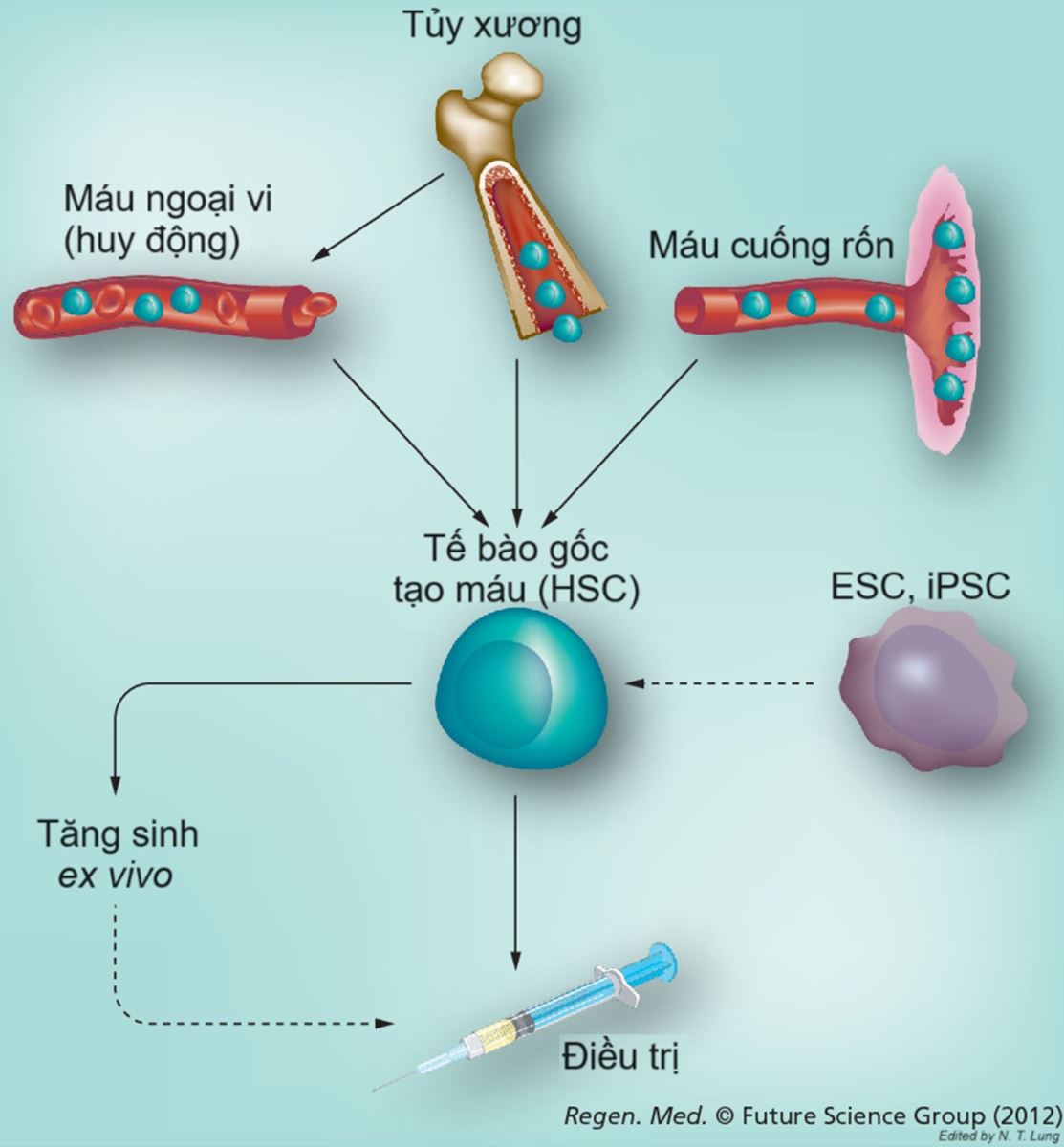 - Thu hoạch tế bào gốc: Thu thập tế bào gốc từ tủy xương hoặc máu ngoại vi của người bệnh (ghép tự thân) hoặc người hiến (ghép đồng loại)