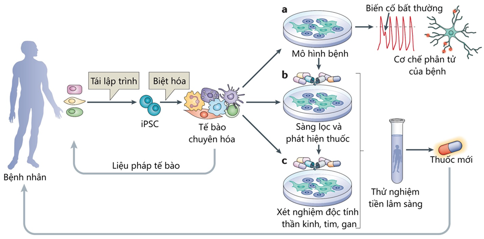 Nguồn: Bellin M., et al. (2012). Induced pluripotent stem cells: the new patient?. Nature reviews Molecular cell biology, 13(11), 713-726.