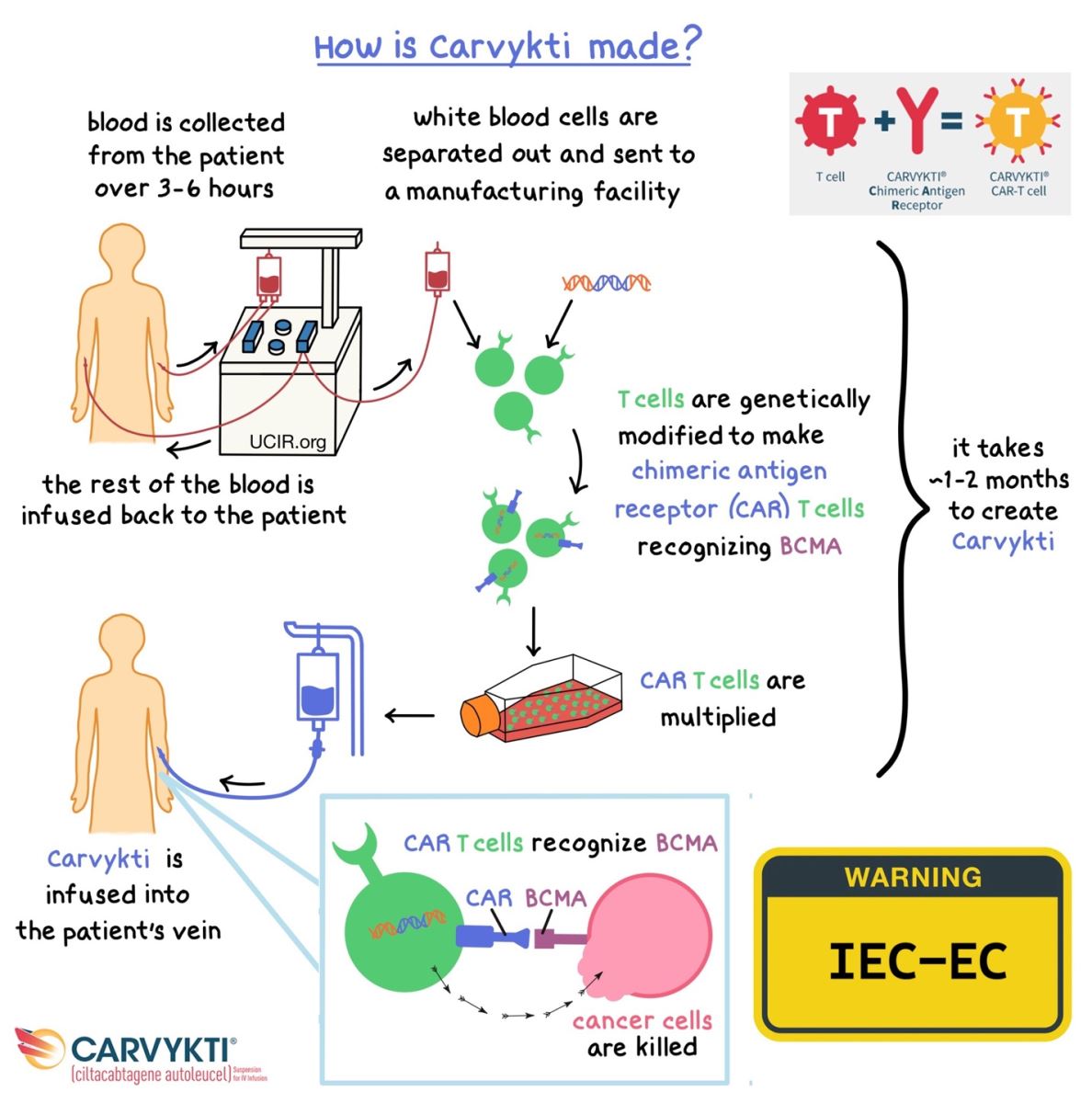 Carvykti (ciltacabtagene autoleucel) là một loại liệu pháp tế bào CAR-T được phát triển bởi hãng Janssen Biotech, sử dụng trong điều trị bệnh đa u tủy xương. Đây là những tế bào lympho T của chính bệnh nhân được cải biến di truyền để mang thụ thể nhân tạo đặc hiệu với kháng nguyên trưởng thành tế bào B (B-cell maturation antigen –– BCMA) có mặt trên bề mặt tế bào đa u tủy xương, nhờ đó có thể phát hiện dễ dàng hơn và tiêu diệt những tế bào ác tính này. Carvykti là một trong hai sản phẩm CAR-T hướng đích BCMA, và là một trong bảy sản phẩm CAR-T nói chung đã được Cục quản lý Thực phẩm và Dược phẩm Hoa Kỳ (US Food and Drug Administration – US FDA) phê duyệt.